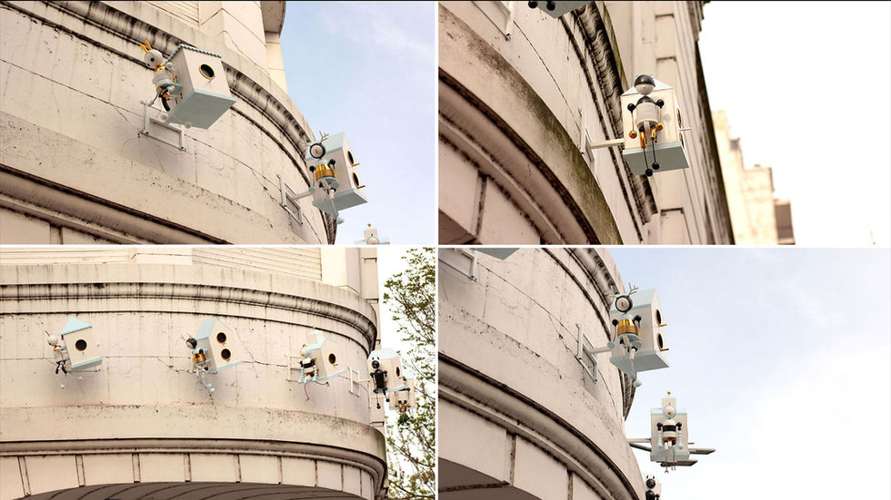 Urban intervention by Mariano Sigal, consisting of five automata installed on a building façade in Buenos Aires. I led the fabrication of all five pieces, each featuring built-in movement mechanisms.
